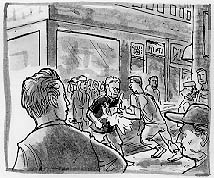 Our hero, The sole witness to this event, stopped in the crosswalk in disbelief. For a moment he doubted that he had seen it at all, since all physical evidence disappeared in a stream of human traffic. After much reflection he concluded that this too, was proof that New Yorkers, they that live, sleep and breathe all over one another all day long, must love people much more than in other places. For clearly, in this case neither pedestrian had wanted the other to feel that he was guilty of any offense, and had tacitly forgiven and forgotten the whole thing in a New York split-second. Our man considered: what was a violent murder or two here or there, compared to millions of moments of unselfishness like this going on all day, every day, in every far-flung corner of the city that never sleeps? Not enough to get nervous about, certainly. He was home.