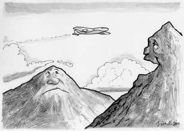 - "Good afternoon ladies and gentlemen, we'll be flying at an altitude of 30,000 feet today, and of you look over to your right you can see some of Gutzon Borglum early artworks before he figured that ex-presidents would make much better attractions." Chris Borders