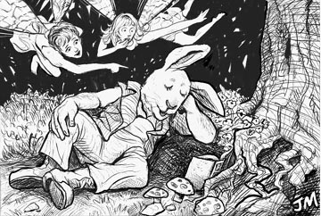 - "Hey it's the White Rabbit from Alice in Wonderland! Boy won't he be surprised that he's in Never-never Land, isn't that so Tinker-Bell?" Chiara Pomerantz, Northridge, CA